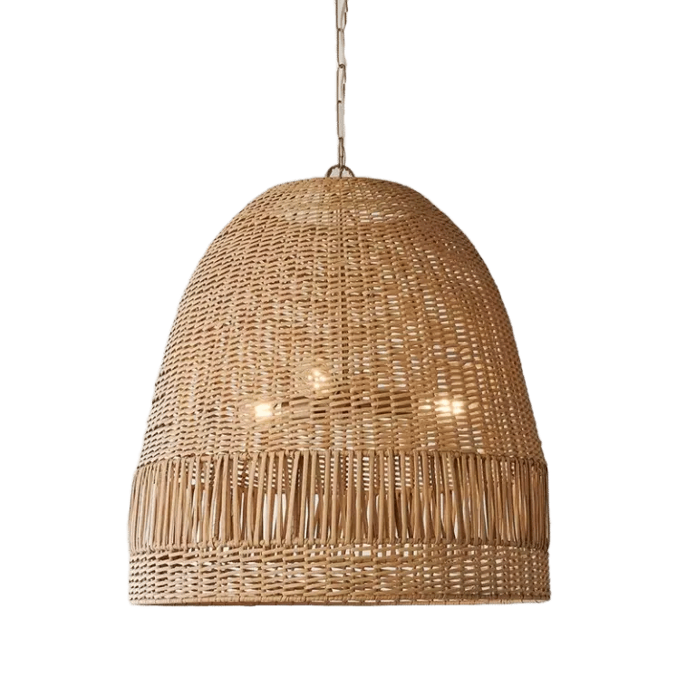 Combining handmade textures and organic materials, this boho chic pendant is playful and fun. Channel Side Dome Pendant, Large, Natural Rattan, $598, shadesoflight.com.