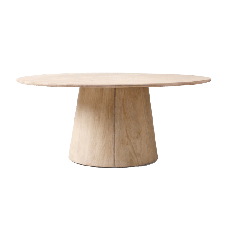 The graceful curves of this table make it feel like a piece of art. Crafted from mango wood, the cerused white finish feels fresh and beachy. Anton Round Pedestal Dining Table, 72”, $1,700, westelm.com.