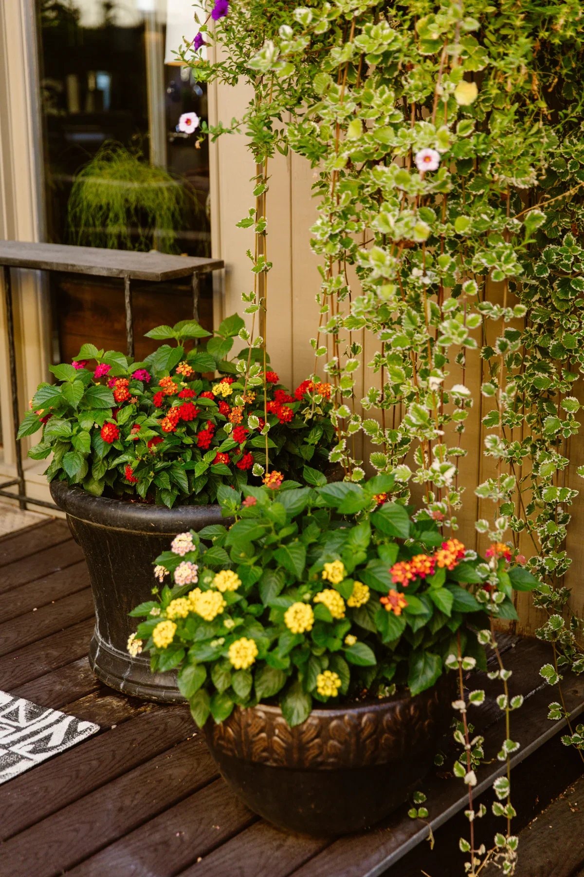As a former high-end event florist, Schell feels that greenery and florals play an important role in creating outdoor spaces. He is a fan of container gardens, using pots of varying sizes to house nearly all of their plants and trees. “I am able to move the trees and plants around seasonally, swapping them out as needed.” This also allows the placement of potted plants at various heights, keeping each plane of sight full of visual interest.